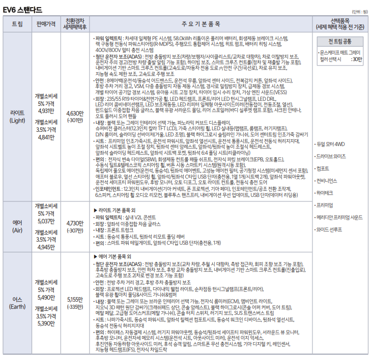 가격은 트림 및 옵션 사양에 따라 상이하오니 참조하시길 바랍니다.