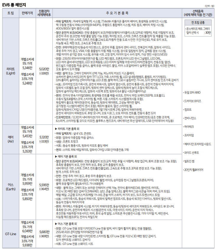 EV6 스탠다드 가격표입니다.